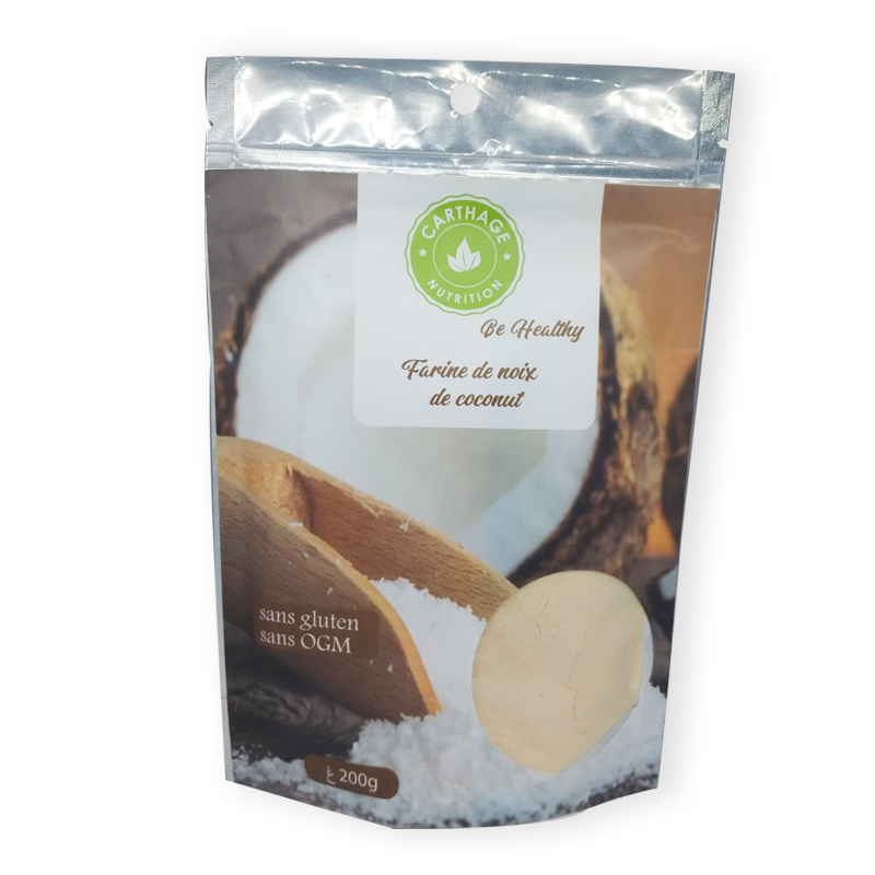 La Farine de Noix de Coco de Carthage Nutrition est une alternative sans gluten, riche en fibres et faible en glucides. Idéale pour des recettes saines et savoureuses, elle apporte une touche exotique à vos pâtisseries et plats.