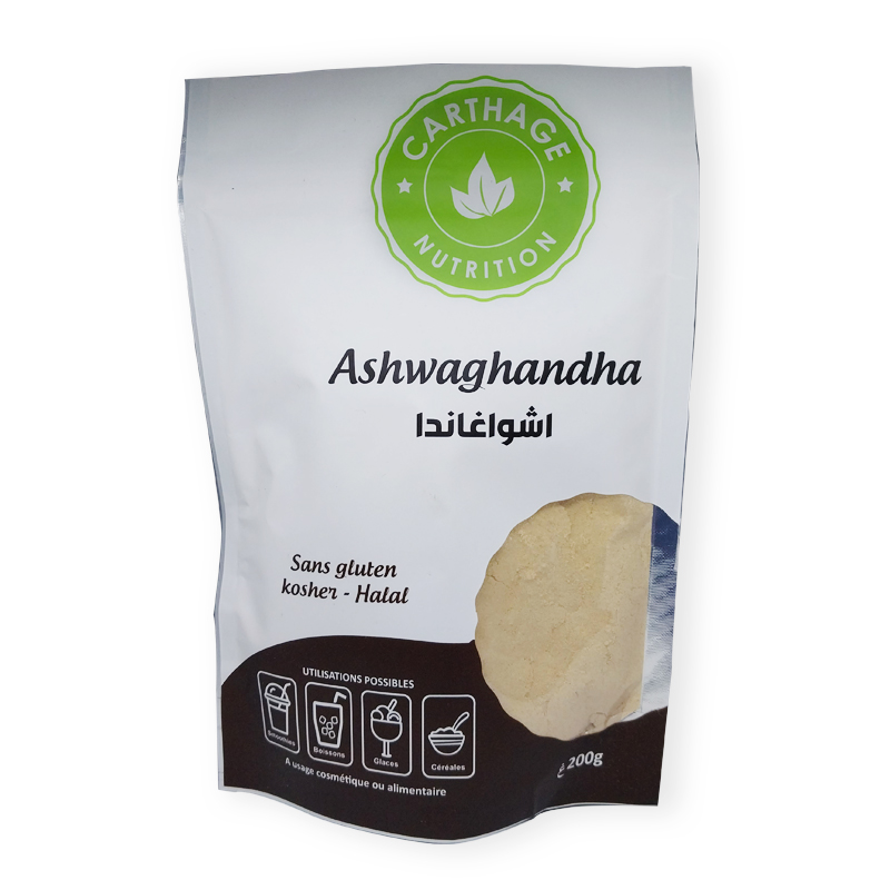 -L’Ashwagandha de Carthage Nutrition est un complément naturel reconnu pour ses propriétés adaptogènes, aidant à réduire le stress, améliorer l’humeur et renforcer la vitalité globale.